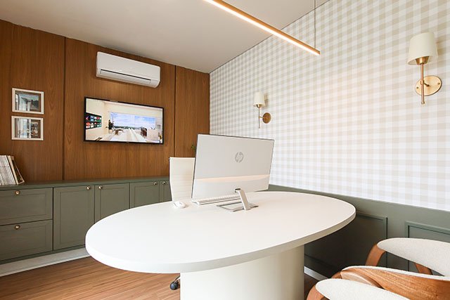 Compartilhar Personalidade e aconchego Este ambiente foi concebido para ser um espaço de trabalho e reuniões, onde funcionalidade e conforto se...